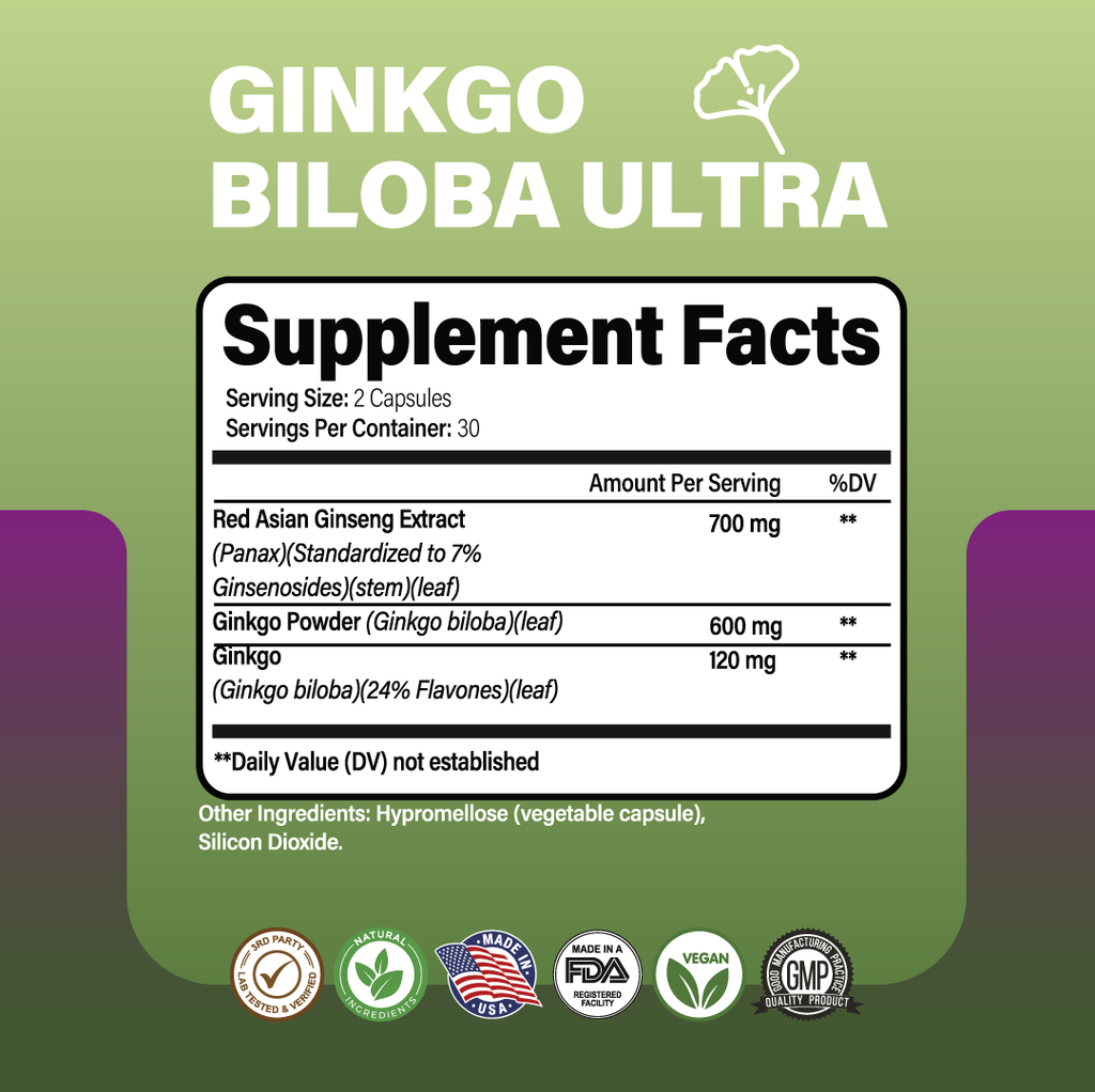 Boost your cognitive function and overall vitality with our Ginkgo Biloba Ultra, a powerful blend designed to support memory, focus, and mental clarity.